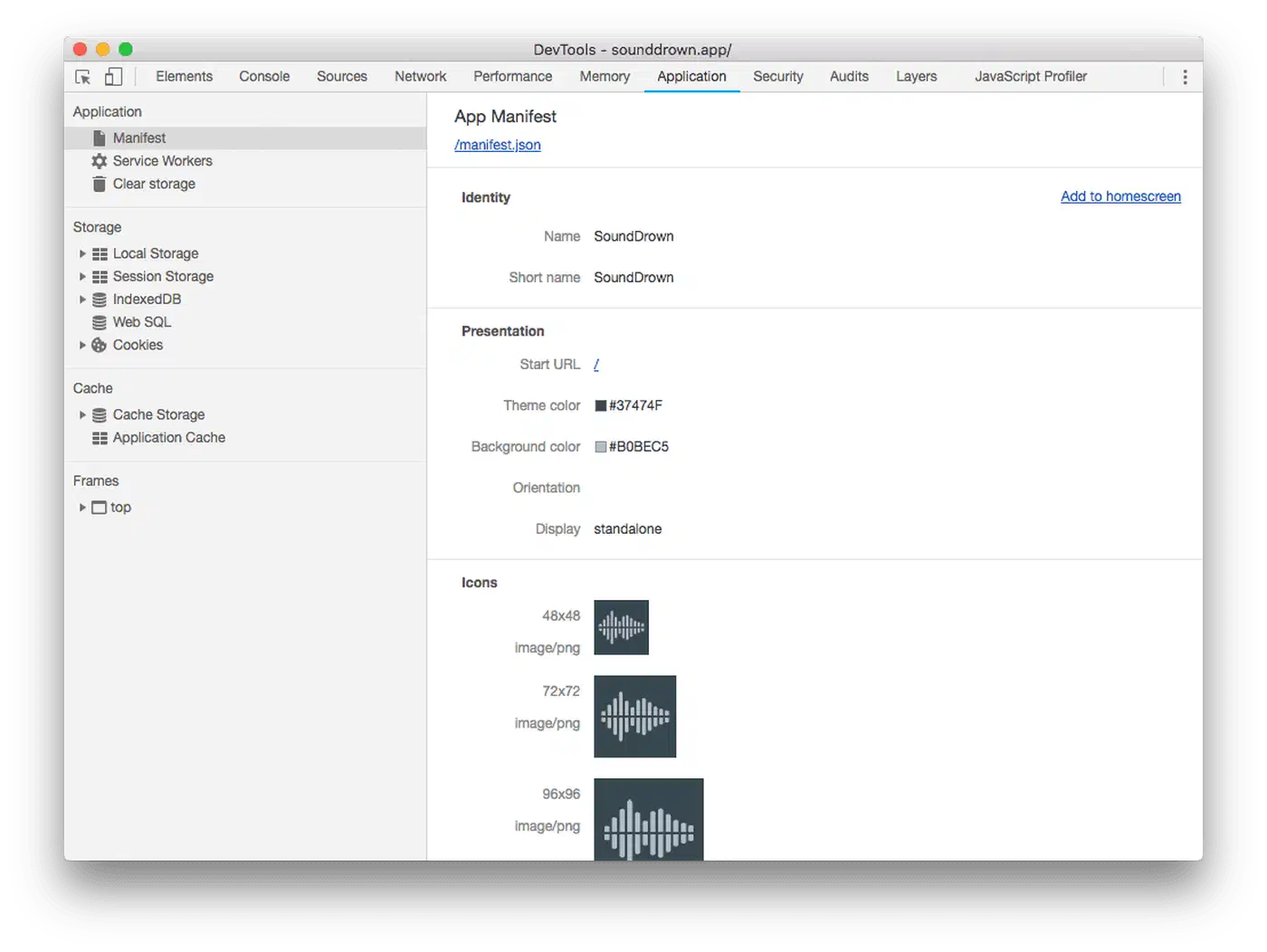 To verify everything works, open Chrome DevTools, go to the Application tab, and click Manifest. The Installability section flags missing icons, invalid fields, or HTTPS problems.