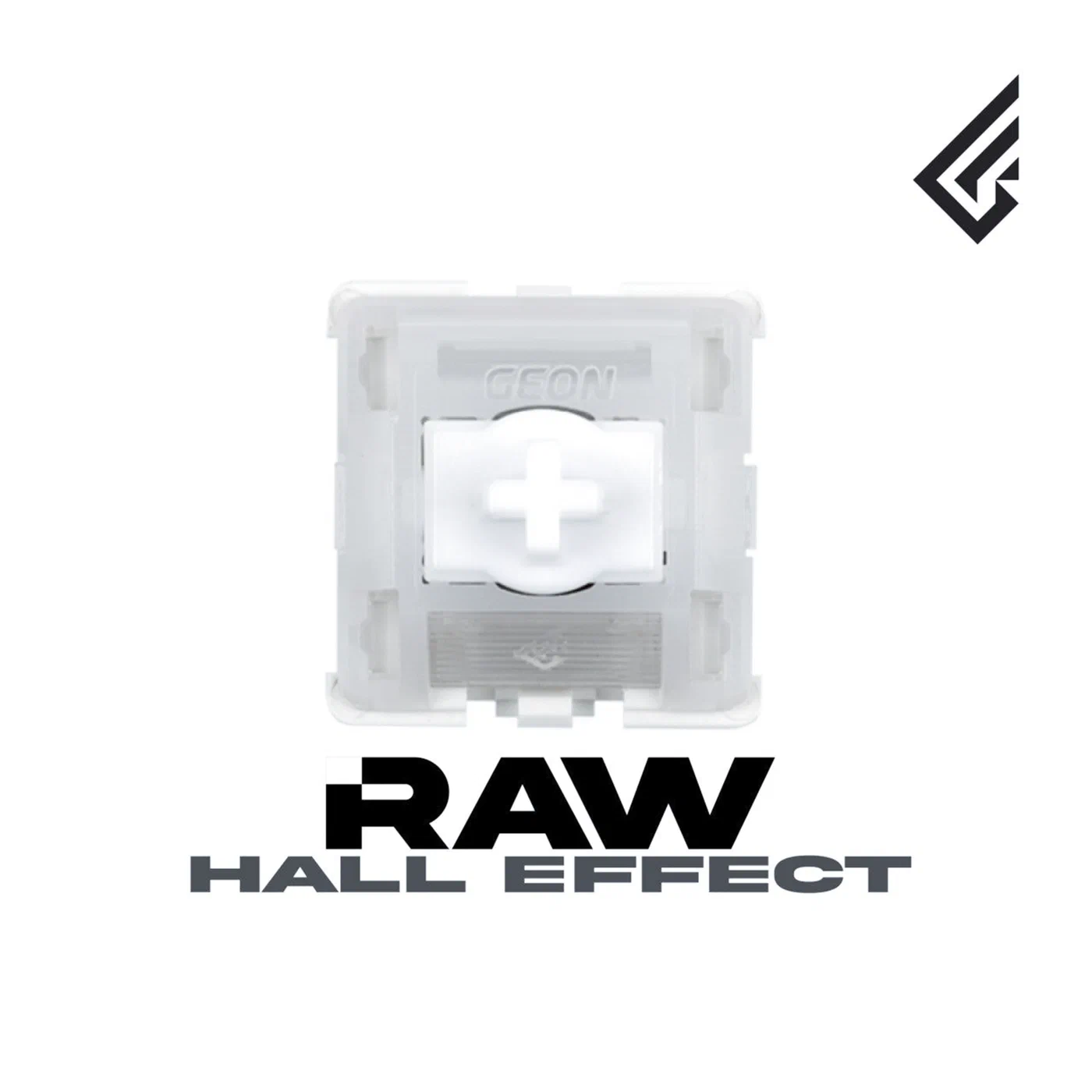 The switches are Geon x Gateron Magnetic Jade, a linear HE switch developed specifically for the Raw HE. They have a 50g bottom-out force (lighter than the Lekker v2) and 3.8mm of total travel. Gateron engineered the magnet strength specifically to produce a consistent analog readout across the full travel range - a detail that matters for rapid trigger precision at very low sensitivity settings.