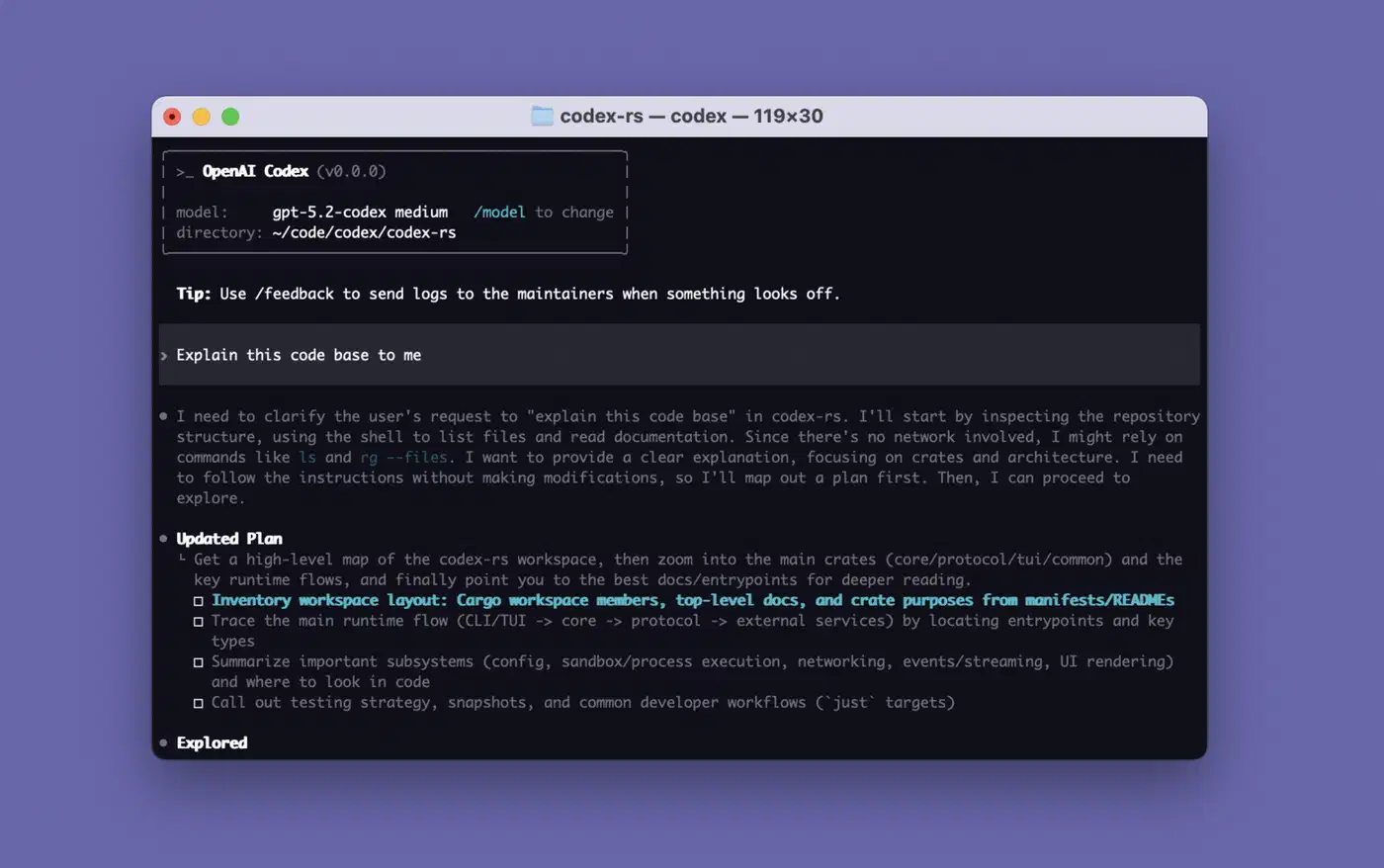 Multi-agent coordination has also matured. Sub-agents now use readable path-based addresses like /root/agent_a with structured inter-agent messaging, enabling workflows where one Codex instance orchestrates others - for example, one agent writes code while another runs tests and a third reviews the diff.