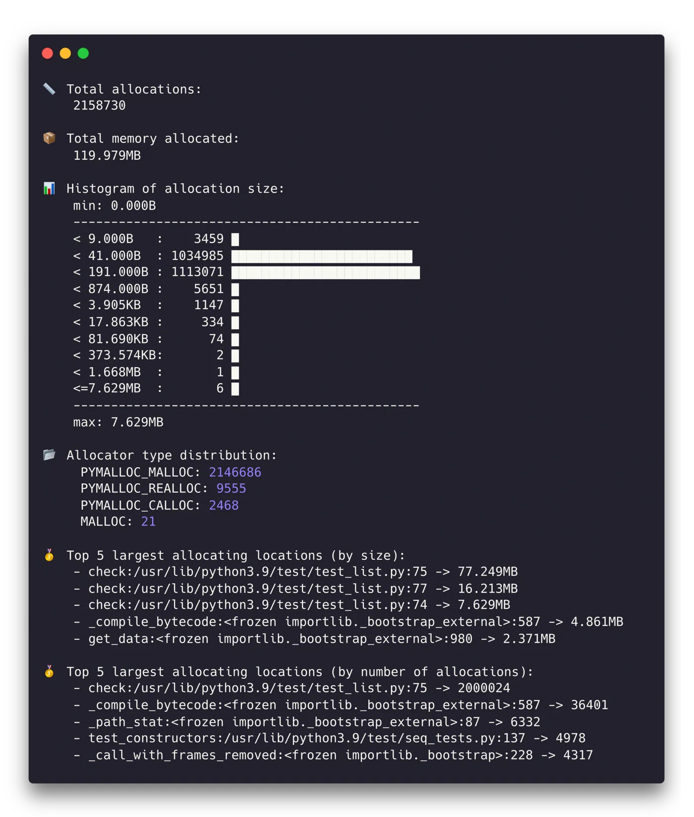 memray table output.bin --biggest-allocs 20