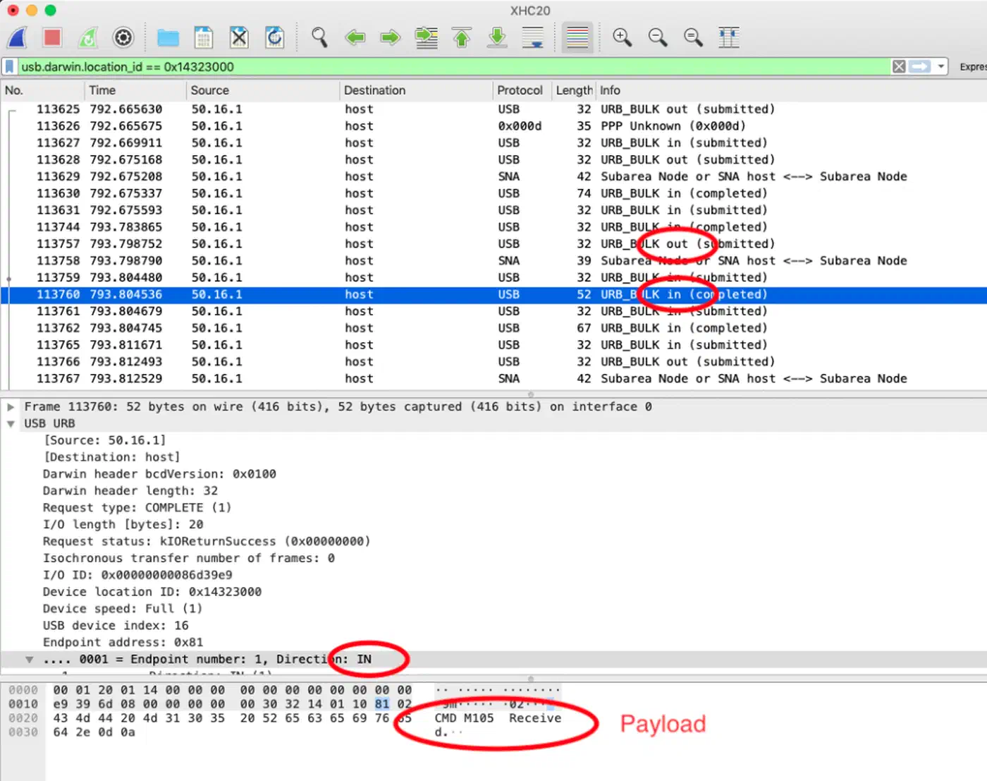 usb.bus_id == 3 && usb.device_address == 7 && !(usb.transfer_type == 0x05)Focus on URB_BULK and URB_CONTROL types with DATA IN or DATA OUT directions. These are the actual command and response payloads.